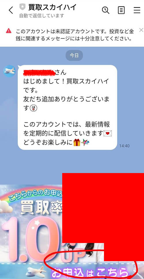 お友達登録後、トーク画面から買取申し込みフォームに進むと買取率アップが適用されます。