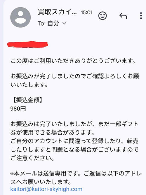 いいえ、買取スカイハイはしっかり振込してくれる優良サイトです。